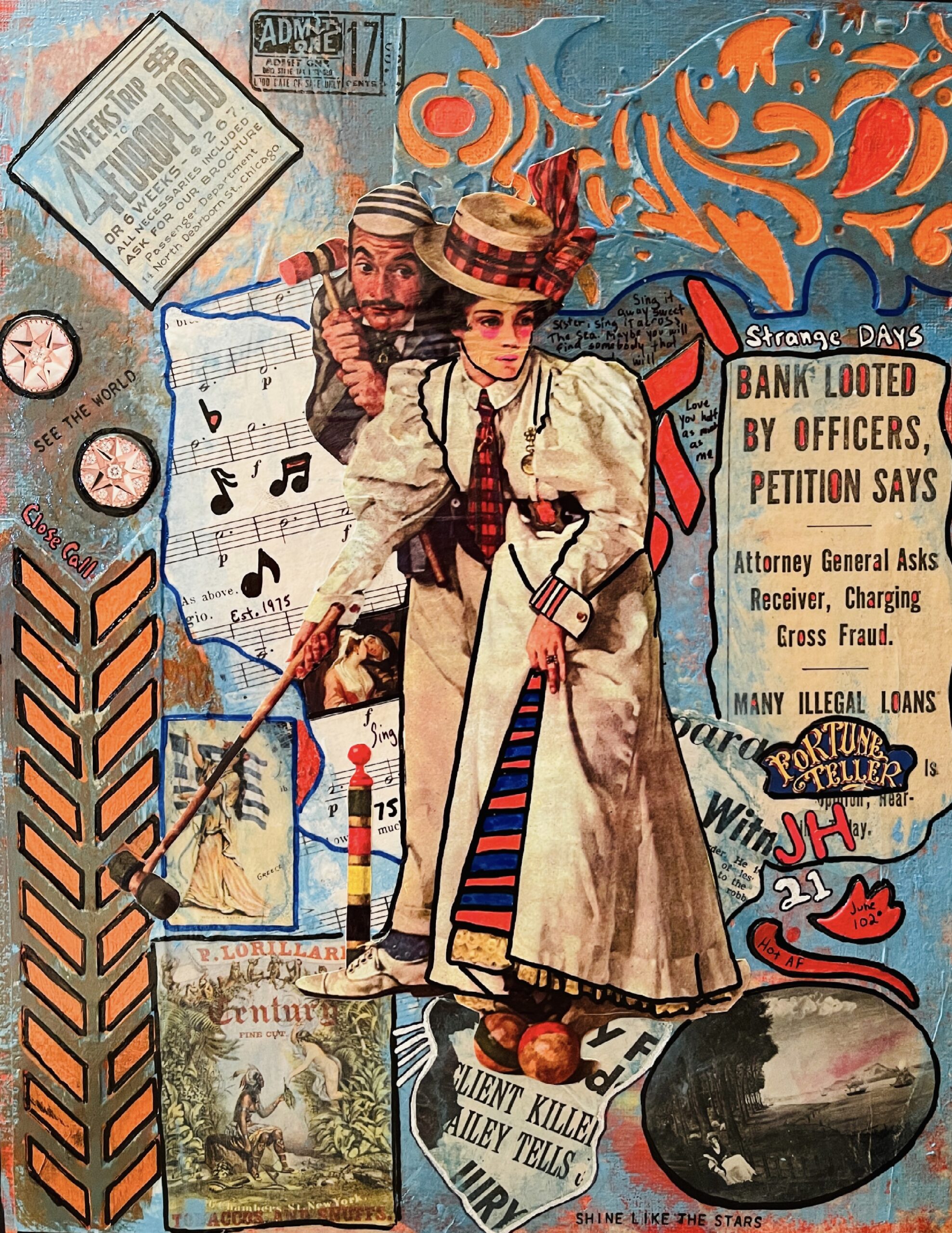 Mixed media collage on canvas panel